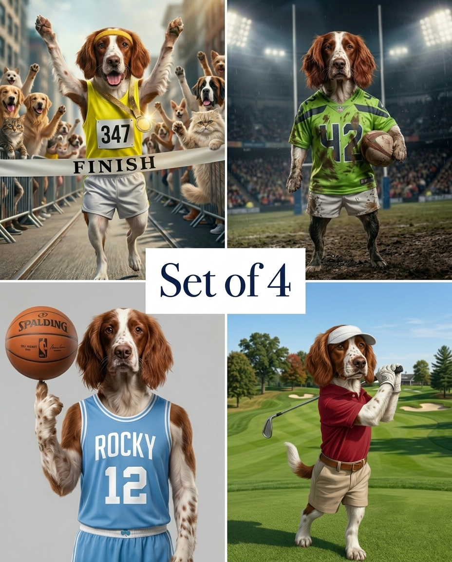 Why settle for one custom portrait when your pet has enough personality (and energy) for an entire team? Our “All-Star Athlete” Custom 4-Portrait Collection turns your furry friend into a sporting legend. Forget traditional, boring pet art. This collection celebrates the raw power, dynamic action, and unstoppable spirit of your dog across four iconic sports.